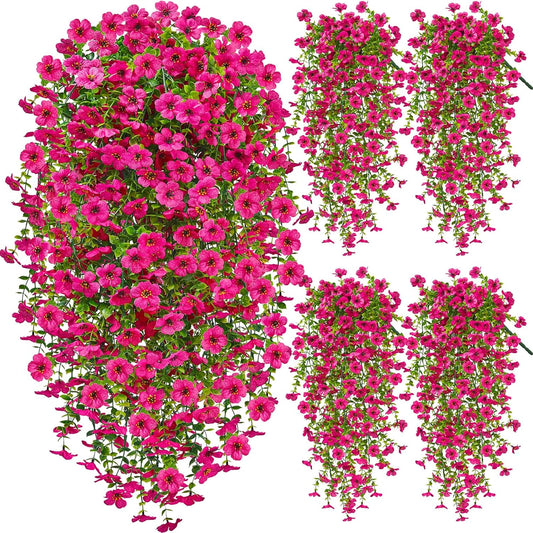 Artificial Hanging Flowers for Outdoors, 4PCS UV Resistant Artificial Outdoor Flowers, Silk Flowers for Outside Patio Porch Front Yard Window Garden Indoor Decor(Spring Color,4PCS)
